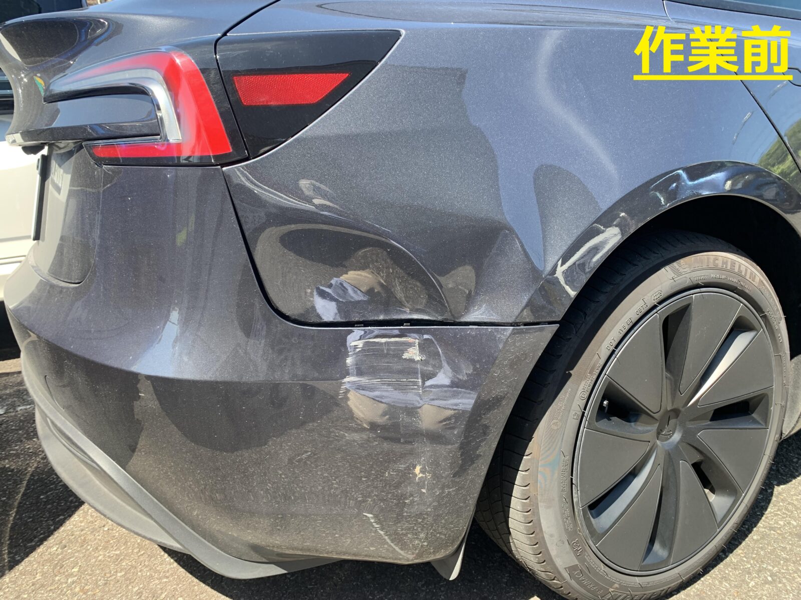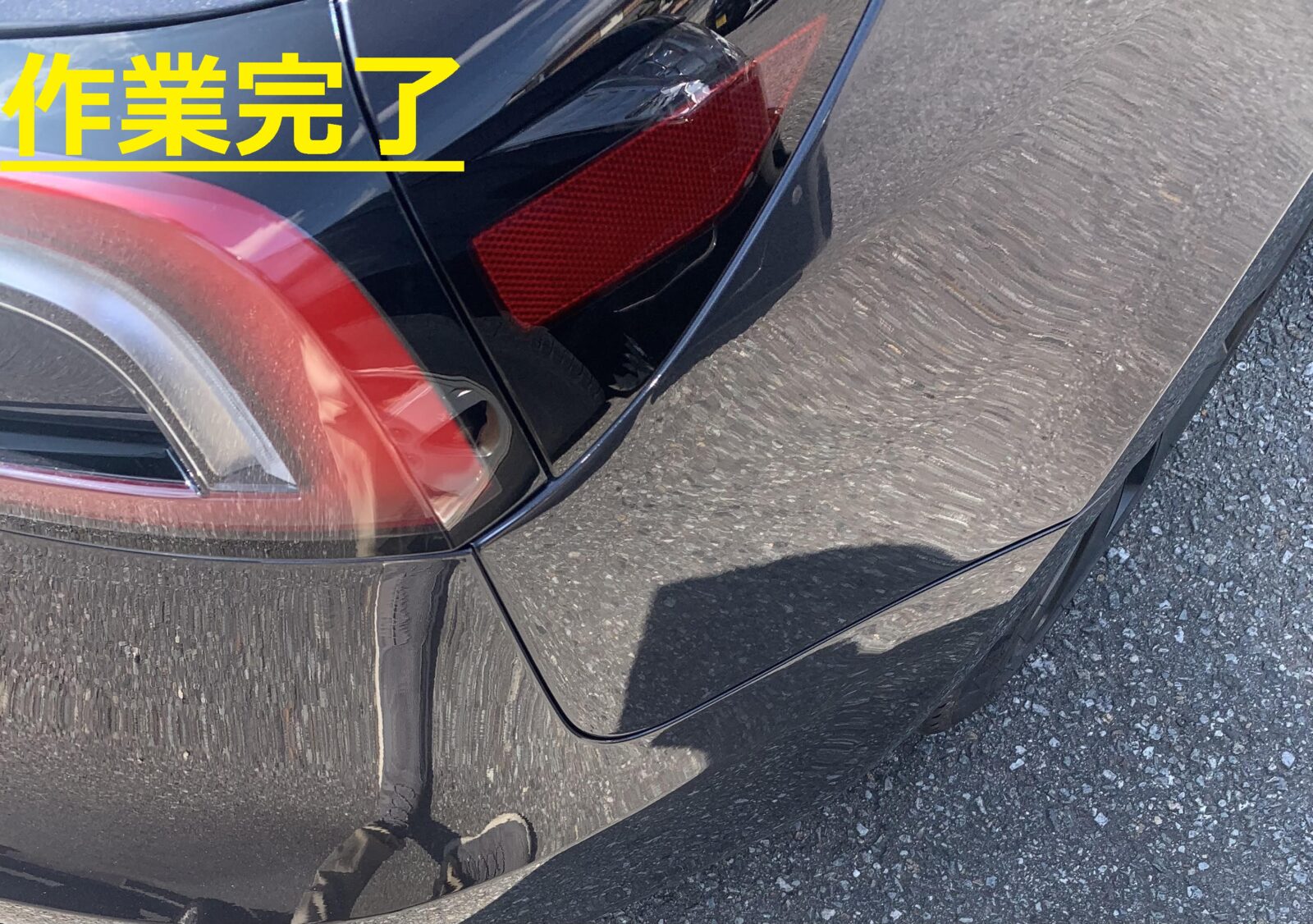 通常パネル交換作業になりますが、当店の板金技術で交換なく板金修理です。